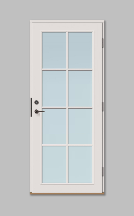 Värvitud ja võimalikult suure klaasiavaga uksed terrassile ja rõdule koos prosspulkadega.Võimalik kliendile sobivas lengi välismõõdus, RAL värvitoonis, nii laiendiga, paarisuksena kui ka valgmikega.